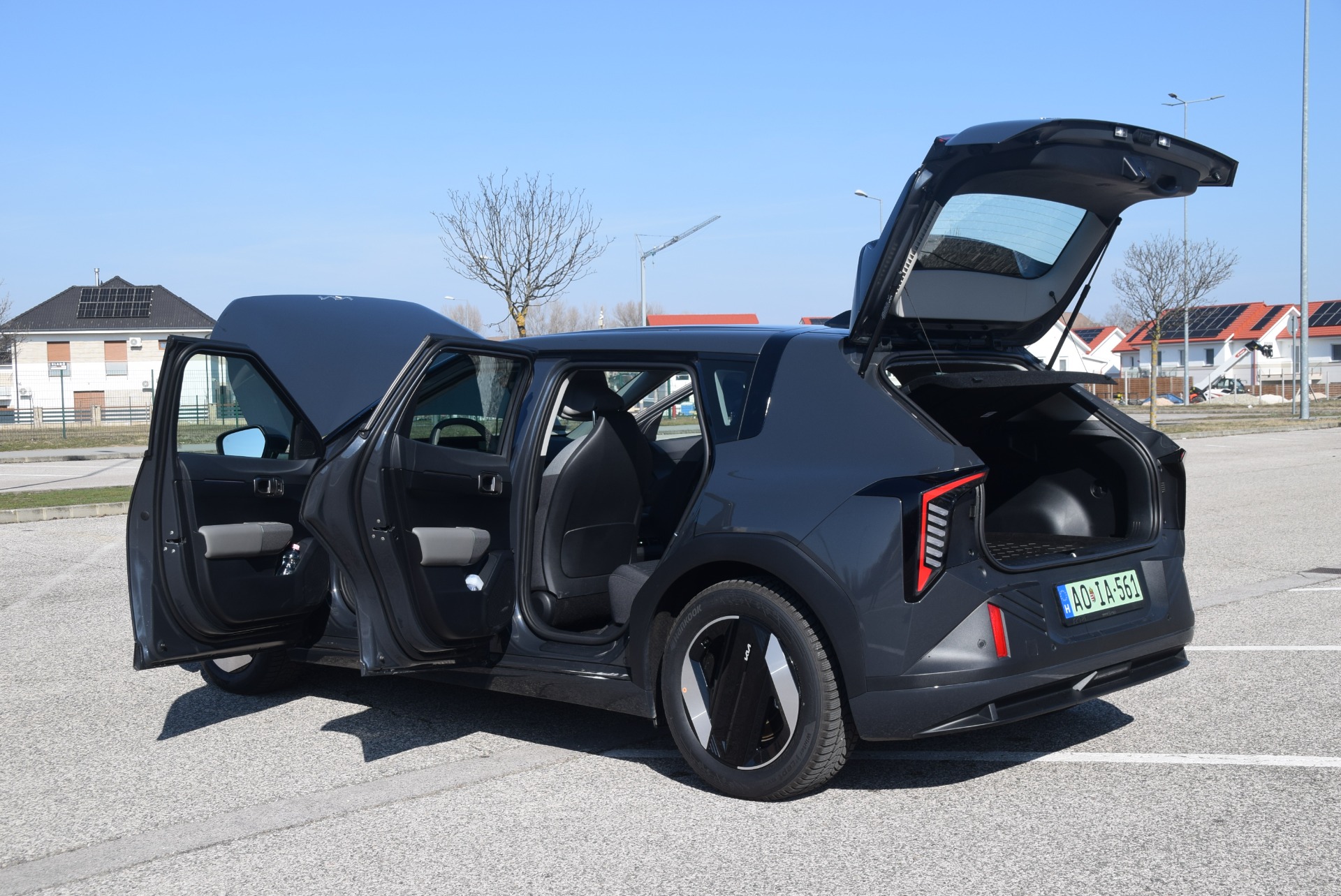 A formaterv külön fejezetet érdemel. A Kia az elmúlt években merész irányba indult el a dizájn területén, az EV4 pedig ennek egyik legjobb példája. A karosszéria formája megosztó lehet, de az biztos, hogy nem marad észrevétlen. A teszthét során több alkalommal is azt vettük észre, hogy az autósok és a járókelők hosszabban figyelik az autót, ami jól mutatja, mennyire szokatlan jelenség az utakon.